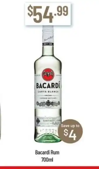 Bacardi rum is now part of a great promotion at Chambers Cellars. On this page, you’ll find all details about pricing, discount terms, and valid dates. You can also view similar Bacardi rum deals to make the best choice. This promotion is valid from 28-01-2026 to 24-02-2026. If it has ended, check out other current offers. Stay updated by following the product category to see when Bacardi rum goes on special again.Frequently asked questions about Bacardi rum