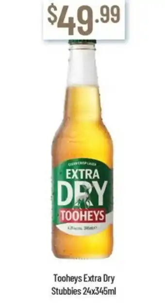 This offer is available in various stores, view all products to get the cheapest Tooheys extra dry. If you'd like to find out whether this product has a bigger discount in another store, check the category 'Bottle Shops'. You may also find these offers interesting: Tooheys extra dry 4.3%, Tooheys extra dry bottles & Tooheys new.