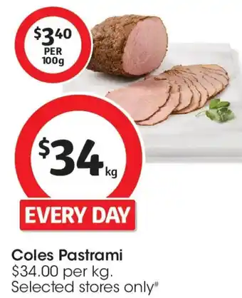 This offer is available in various stores, view all products to get the cheapest Coles pastrami. If you'd like to find out whether this product has a bigger discount in another store, check the category 'Supermarkets & Grocery Stores'. You may also find these offers interesting: Coles classic burgers, Coles cat food & Coles mediterranean olives.
