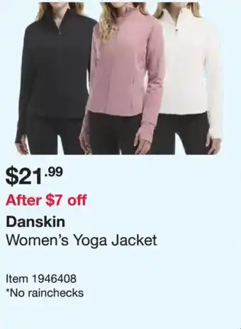 This offer is available in various stores, view all products to get the cheapest Danskin Women's Yoga Jacket. If you'd like to find out whether this product has a bigger discount in another store, check the category 'Wholesale'. You may also find these offers interesting: Danskin Women's Brushed Tight, Yoga Mat & Adult's waterproof jacket.