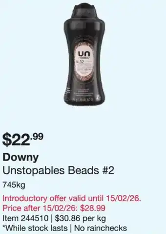Downy Unstopables Beads #2 is now part of a great promotion at Costco. On this page, you’ll find all details about pricing, discount terms, and valid dates. You can also view similar Downy Unstopables Beads #2 deals to make the best choice. This promotion is valid from 19-01-2026 to 15-02-2026. If it has ended, check out other current offers. Stay updated by following the product category to see when Downy Unstopables Beads #2 goes on special again.Frequently asked questions about Downy Unstopables Beads #2