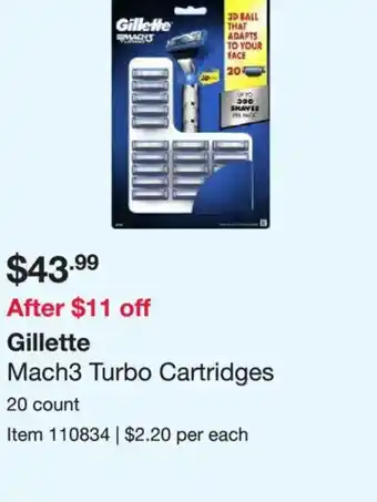 Gillette Mach3 Turbo Cartridges promotion at Costco