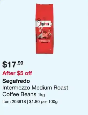 When is Segafredo Intermezzo Medium Roast Coffee Beans on sale? Or are you wondering if Segafredo Intermezzo Medium Roast Coffee Beans will be discounted next week? These are questions we hear all the time. Many shoppers plan ahead with a weekly list, and that’s why we always publish promotions early. That way, you know whether to buy now or wait for a better price. Keep an eye on our website to see if Segafredo Intermezzo Medium Roast Coffee Beans will be on special next week.Frequently asked questions about Segafredo Intermezzo Medium Roast Coffee Beans