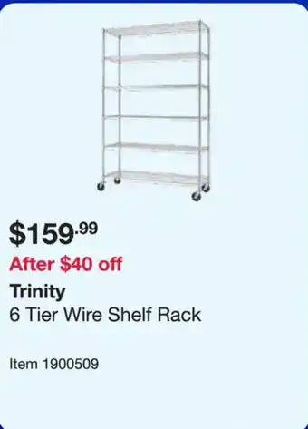 Check for the cheapest product among all the offers! If you want to know if Costco has the highest discount for Trinity 6 Tier Wire Shelf Rack, compare it on the Topic page or with other stores.