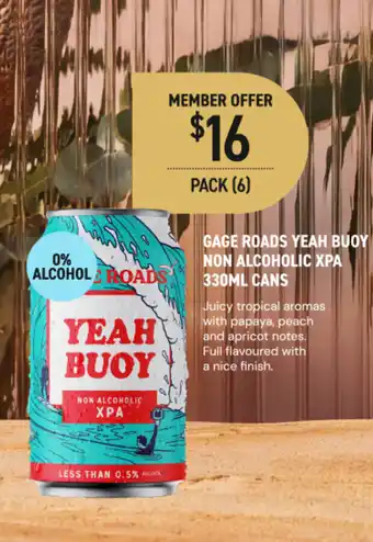The price of Gage roads yeah buoy non alcoholic xpa cans can be found at the top of the page, together with the dates during which the offer is available. You can also check the price in the current Dan Murphy's catalogue or on the Dan Murphy's website. Promotional offers assure you of buying Dan Murphy's products at the lowest price.