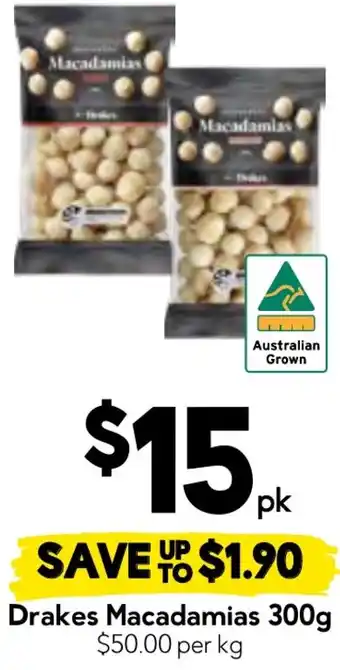 This offer is available in various stores, view all products to get the cheapest Drakes macadamias. If you'd like to find out whether this product has a bigger discount in another store, check the category 'Supermarkets & Grocery Stores'. You may also find these offers interesting: Drakes gourmet or pasta salads, Drakes sandwich or cafe style soft sliced bread & Australian beef brisket trimmed, untrimmed or with rub.