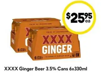 This offer is available in various stores, view all products to get the cheapest XXXX Ginger Beer 3.5% Cans. If you'd like to find out whether this product has a bigger discount in another store, check the category 'Supermarkets & Grocery Stores'. You may also find these offers interesting: James squire ginger beer cans, Bundaberg Ginger Beer & XXXX Gold 3.5% Cans.