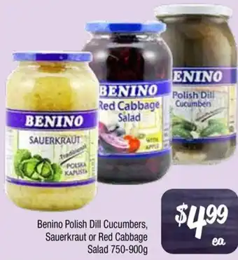 Upcoming Benino Polish Dill Cucumbers, Sauerkraut or Red Cabbage Salad promotion