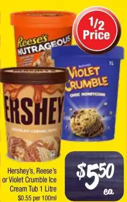 Hershey's, reese's or violet crumble ice cream tub