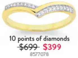 This 10 points of diamonds 8577078 is currently on special at Goldmark. Check out the best deals and enjoy great savings while this product is on sale. Buy 10 points of diamonds 8577078 online via the Goldmark website or grab it at the lowest available price nearby. Catalogueoffers.com.au collects all 10 points of diamonds 8577078 specials for you. Want to stay informed? Click the bell icon to get a free alert when this product is back on special or part of a new promotion.Frequently asked questions about 10 points of diamonds 8577078