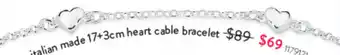 This Italian made heart cable bracelet is currently on special at Goldmark. Check out the best deals and enjoy great savings while this product is on sale. Buy Italian made heart cable bracelet online via the Goldmark website or grab it at the lowest available price nearby. Catalogueoffers.com.au collects all Italian made heart cable bracelet specials for you. Want to stay informed? Click the bell icon to get a free alert when this product is back on special or part of a new promotion.Frequently asked questions about Italian made heart cable bracelet