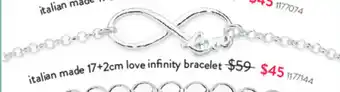 This offer is available in various stores, view all products to get the cheapest Italian made love infinity bracelet. If you'd like to find out whether this product has a bigger discount in another store, check the category 'Jewellery, Watches & Accessories'. You may also find these offers interesting: Italian made solid curb bracelet 2127000, Italian made solid figaro bracelet 2101011 & Italian made solid belcher bracelet 2109036.