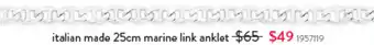 Italian made marine link anklet is now part of a great promotion at Goldmark. On this page, you’ll find all details about pricing, discount terms, and valid dates. You can also view similar Italian made marine link anklet deals to make the best choice. This promotion is valid from 13-04-2026 to 10-05-2026. If it has ended, check out other current offers. Stay updated by following the product category to see when Italian made marine link anklet goes on special again.Frequently asked questions about Italian made marine link anklet
