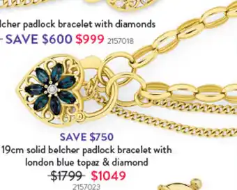 This Solid belcher padlock bracelet with london blue topaz & diamond 2157023 is available in the following branches based on your set location: