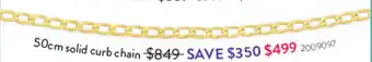 The price of Solid curb chain 2009097 can be found at the top of the page, together with the dates during which the offer is available. You can also check the price in the current Goldmark catalogue or on the Goldmark website. Promotional offers assure you of buying Goldmark products at the lowest price.