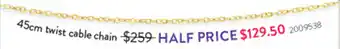 This offer is available in various stores, view all products to get the cheapest Twist cable chain 2009538. If you'd like to find out whether this product has a bigger discount in another store, check the category 'Jewellery, Watches & Accessories'. You may also find these offers interesting: Chunky Cable Knit Beanie, Half twist huggies & Gippsland Twist Yoghurt.