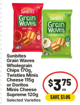 grain waves wholegrain chips 170g, twisties minis cheese 115g or doritos minis cheese supreme 120g selected varieties