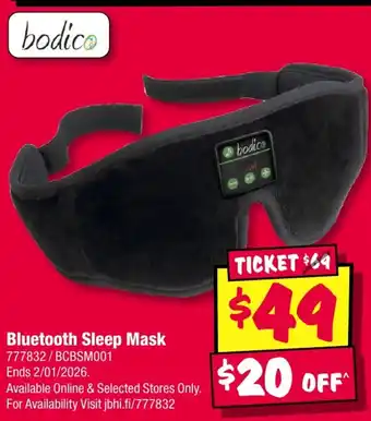 The price of Bluetooth Sleep Mask can be found at the top of the page, together with the dates during which the offer is available. You can also check the price in the current JB Hi-Fi catalogue or on the JB Hi-Fi website. Promotional offers assure you of buying JB Hi-Fi products at the lowest price.