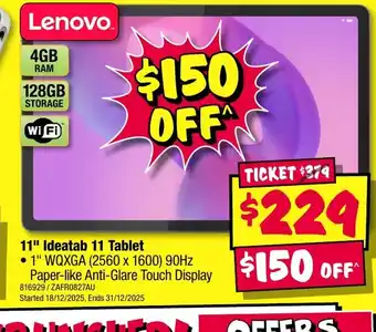 Now on special at JB Hi-Fi: Lenovo 11" ideatab 11 tablet ✅ Valid from 26-12 to 1-01 as part of this week’s sale.