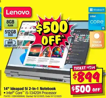 Now on special at JB Hi-Fi: Lenovo. 14" ideapad 5i 2-in-1 notebook ✅ Valid from 26-12 to 1-01 as part of this week’s sale.
