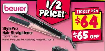 Stylepro hair straightener is currently on sale at JB Hi-Fi, valid from 18-12-2025 to 31-12-2025. Find more great deals online and compare active offers to get the best price available. At Catalogueoffers.com.au, we list all current Stylepro hair straightener specials so you can plan your shopping wisely. Adjust your list based on current discounts and check back regularly for new promotions.Frequently asked questions about Stylepro hair straightener