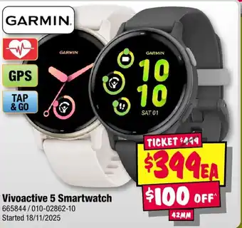 This Vivoactive 5 Smartwatch is currently on special at JB Hi-Fi. Check out the best deals and enjoy great savings while this product is on sale. Buy Vivoactive 5 Smartwatch online via the JB Hi-Fi website or grab it at the lowest available price nearby. Catalogueoffers.com.au collects all Vivoactive 5 Smartwatch specials for you. Want to stay informed? Click the bell icon to get a free alert when this product is back on special or part of a new promotion.Frequently asked questions about Vivoactive 5 Smartwatch