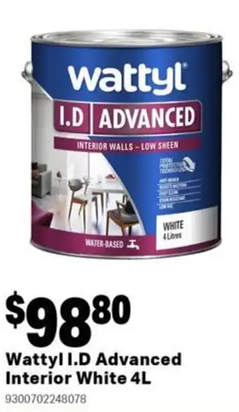 The price of Wattyl i.d advanced interior white can be found at the top of the page, together with the dates during which the offer is available. You can also check the price in the current Mitre 10 catalogue or on the Mitre 10 website. Promotional offers assure you of buying Mitre 10 products at the lowest price.