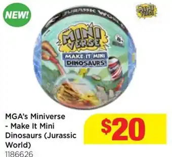 When is Mga's miniverse - make it mini dinosaurs (jurassic world) on sale? Or are you wondering if Mga's miniverse - make it mini dinosaurs (jurassic world) will be discounted next week? These are questions we hear all the time. Many shoppers plan ahead with a weekly list, and that’s why we always publish promotions early. That way, you know whether to buy now or wait for a better price. Keep an eye on our website to see if Mga's miniverse - make it mini dinosaurs (jurassic world) will be on special next week.Frequently asked questions about Mga's miniverse - make it mini dinosaurs (jurassic world)