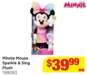 Minnie mouse sparkle & sing plush promotion at Mr Toys