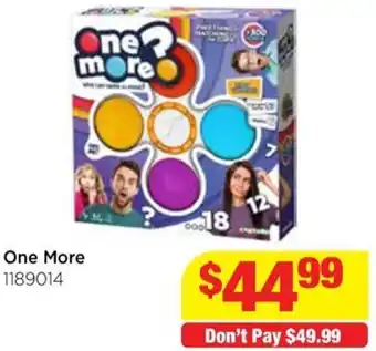 Mr Toys offers a wide collection of products, besides the One more. Keep an eye on the weekly Mr Toys catalogue to find the best offers and promotions. Besides One more, you can also find the following offers: Transformers one racing warrior, Tip top the one bread & PHILIPS 8L All-in-One Cooker.