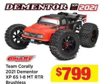 Team corally 2021 dementor xp 6s 1-8 mt rtr brushless is currently on sale at Mr Toys, valid from 04-02-2026 to 10-04-2026. Find more great deals online and compare active offers to get the best price available. At Catalogueoffers.com.au, we list all current Team corally 2021 dementor xp 6s 1-8 mt rtr brushless specials so you can plan your shopping wisely. Adjust your list based on current discounts and check back regularly for new promotions.Frequently asked questions about Team corally 2021 dementor xp 6s 1-8 mt rtr brushless