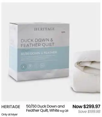 Myer offers a wide collection of products, besides the 50/50 down & feather quilt, white. Keep an eye on the weekly Myer catalogue to find the best offers and promotions. Besides 50/50 down & feather quilt, white, you can also find the following offers: Premium Duck Down Feather quilt, Premium 50/50 Duck Down Feather quilt by Greenfirst & Heritage goose down and feather pillow in white 85/15.