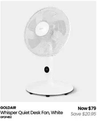 Goldair whisper quiet desk fan, white sale and online promotions now live