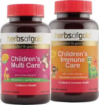 Herbs of Gold Children's Multi Care or Children's Immune Care 60 Chewable Tablets sale and online promotions now live