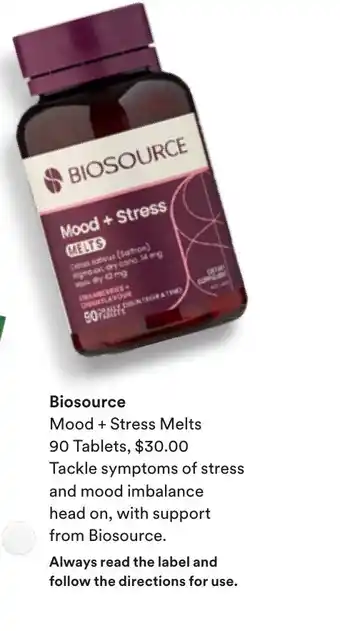 BIOSOURCE Mood + Stress Melts promotion at Priceline