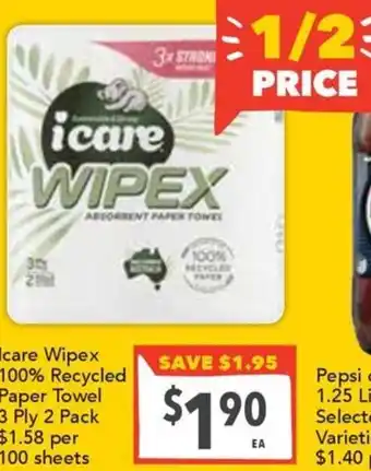 This offer is available in various stores, view all products to get the cheapest Icare Wipex. If you'd like to find out whether this product has a bigger discount in another store, check the category 'Supermarkets & Grocery Stores'. You may also find these offers interesting: Icare wipex 100% recycled paper towel 3 ply, Icare Luxury Toilet Tissue & Icare Luxury 100% Recycled Paper Toilet Tissue 3 Ply.