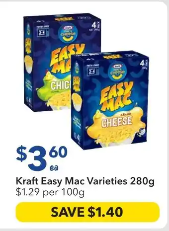 This offer is available in various stores, view all products to get the cheapest Kraft Easy Mac. If you'd like to find out whether this product has a bigger discount in another store, check the category 'Supermarkets & Grocery Stores'. You may also find these offers interesting: Heinz Beanz , Spaghetti or Kraft Mac & Cheese, Heinz Beanz , Spaghetti or Kraft Mac & Cheese & A5 Spiral Notebook - Kraft.