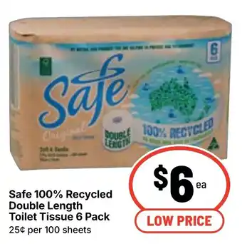This Safe 100% Recycled Double Length Toilet Tissue is currently on special at Ritchies. Check out the best deals and enjoy great savings while this product is on sale. Buy Safe 100% Recycled Double Length Toilet Tissue online via the Ritchies website or grab it at the lowest available price nearby. Catalogueoffers.com.au collects all Safe 100% Recycled Double Length Toilet Tissue specials for you. Want to stay informed? Click the bell icon to get a free alert when this product is back on special or part of a new promotion.Frequently asked questions about Safe 100% Recycled Double Length Toilet Tissue