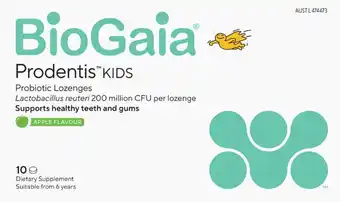 This BioGaia Prodentis Kids Probiotic Lozenges Apple Flavour 10 Lozenges is currently on special at Soul Pattinson Chemist. Check out the best deals and enjoy great savings while this product is on sale. Buy BioGaia Prodentis Kids Probiotic Lozenges Apple Flavour 10 Lozenges online via the Soul Pattinson Chemist website or grab it at the lowest available price nearby. Catalogueoffers.com.au collects all BioGaia Prodentis Kids Probiotic Lozenges Apple Flavour 10 Lozenges specials for you. Want to stay informed? Click the bell icon to get a free alert when this product is back on special or part of a new promotion.Frequently asked questions about BioGaia Prodentis Kids Probiotic Lozenges Apple Flavour 10 Lozenges