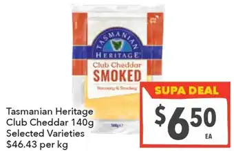 The price of Tasmanian Heritage Club Cheddar can be found at the top of the page, together with the dates during which the offer is available. You can also check the price in the current Supa Valu catalogue or on the Supa Valu website. Promotional offers assure you of buying Supa Valu products at the lowest price.