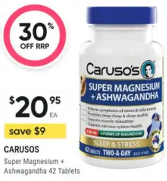 Carusos super magnesium ashwagandha promotion at Super Pharmacy