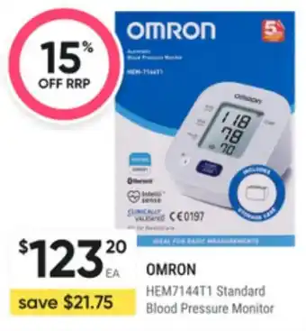This offer is available in various stores, view all products to get the cheapest Omron hem7144t1 standard blood pressure monitor. If you'd like to find out whether this product has a bigger discount in another store, check the category 'Beauty & Pharmacy'. You may also find these offers interesting: Omron HEM7144T1 Standard Blood Pressure Monitor, Omron HEM-7144T1 Automatic Blood Pressure Monitor & Omron HEM-7121 Automatic Blood Pressure Monitor.