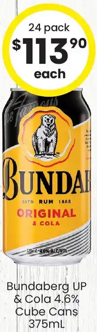 This offer is available in various stores, view all products to get the cheapest Bundaberg up & cola 4.6% cube cans. If you'd like to find out whether this product has a bigger discount in another store, check the category 'Bottle Shops'. You may also find these offers interesting: Bundaberg up & cola 4.6% cube cans, Bundaberg campfire rum & cola 8% cans & Bundaberg campfire rum & cola 6% cans.