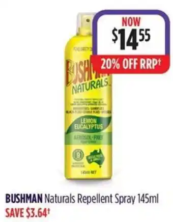 BUSHMAN Naturals Repellent Spray is currently on sale at Wizard Pharmacy, valid from 27-02-2026 to 10-03-2026. Find more great deals online and compare active offers to get the best price available. At Catalogueoffers.com.au, we list all current BUSHMAN Naturals Repellent Spray specials so you can plan your shopping wisely. Adjust your list based on current discounts and check back regularly for new promotions.Frequently asked questions about BUSHMAN Naturals Repellent Spray