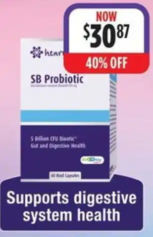 Henryblooms SB Probiotic is now part of a great promotion at Wizard Pharmacy. On this page, you’ll find all details about pricing, discount terms, and valid dates. You can also view similar Henryblooms SB Probiotic deals to make the best choice. This promotion is valid from 27-02-2026 to 10-03-2026. If it has ended, check out other current offers. Stay updated by following the product category to see when Henryblooms SB Probiotic goes on special again.Frequently asked questions about Henryblooms SB Probiotic